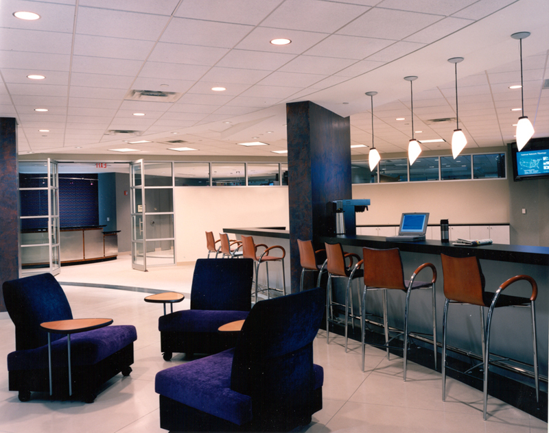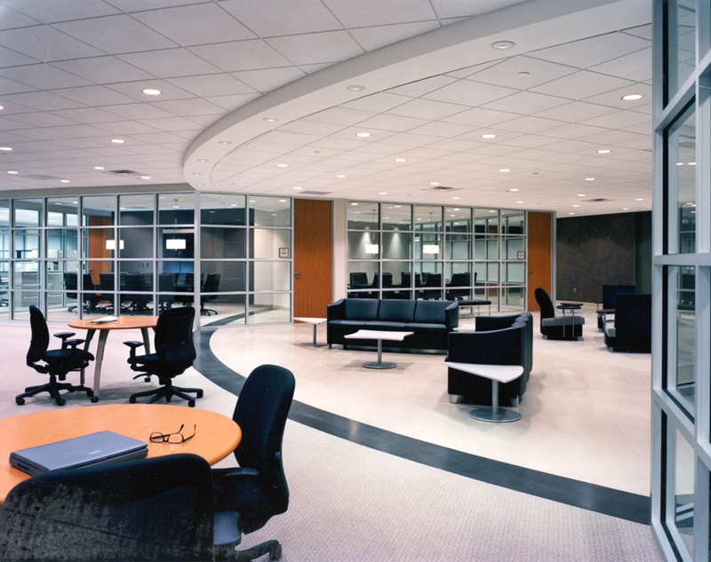 The resulting design was a modern interpretation of the Ritz Tea Room, with a central coffee bar and a living room-like setting that incorporated all of the aforementioned elements and reduced their space needs significantly. This approach was quite visionary in the mid-1990’s as the impetus for the cultural change came from the top. Key to the cultural change was also implementing it first at the top. The Executives worked effectively with less in order to affect change throughout the corporation.