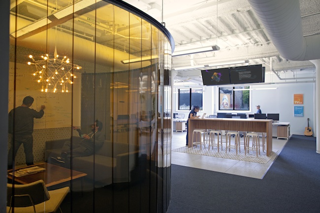 A serpentine entrance, for example, well removed from the main work area, now leads to a “space station” reception desk.