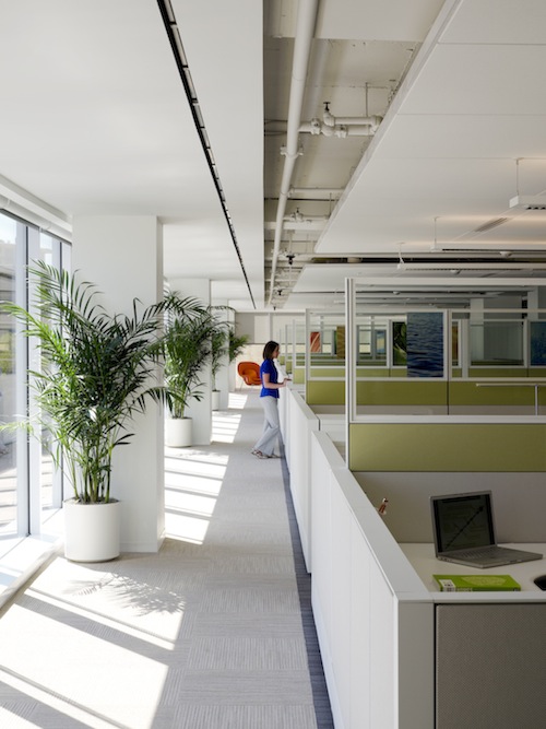 - Workstations were pulled away from windows, mitigating solar heat gain and cold drafts in the winter.