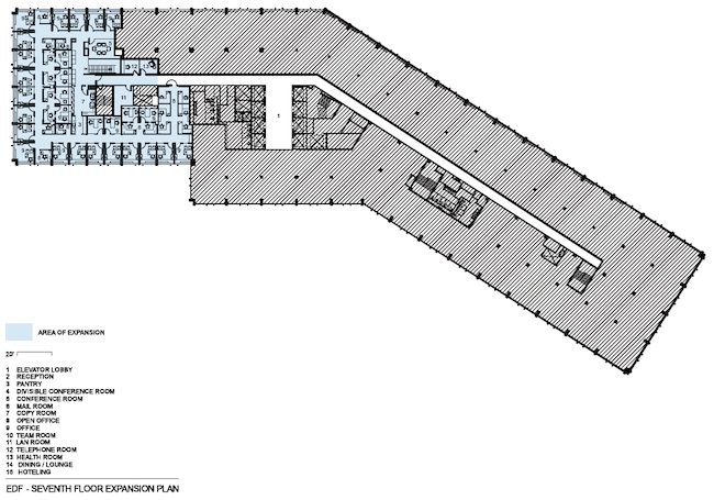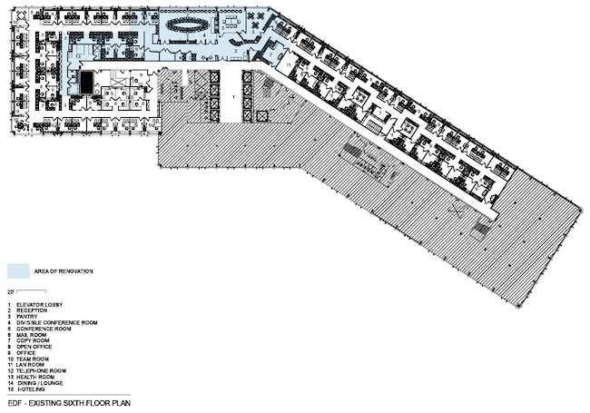 Over subsequent years, as EDF grew out of planned-for expansion space, it located additional staff in non-contiguous offices on other floors within the same building. So in 2010, when EDF decided it wanted to consolidate staff into one suite, it returned to Envision Design for design services.