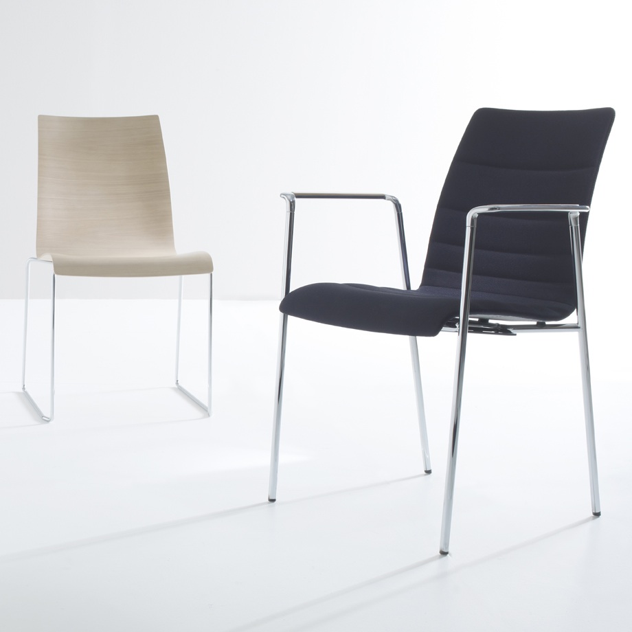 The options are truly endless with Wolfgang C.R. Mezger’s new Fina chair series. While sublimely understated in design, this chair represents just how far the limits of bent plywood technology can be pushed by using a thinner shell than ever before. Fina is deceptively comfortable, too. The slight concave shape of the seat and backrest create the feeling of being cradled in a gentle embrace. Its incredibly thin shell contributes to a look of elegance and allows for more flexibility in the back. User comfort is further enhanced with a waterfall edge along the front of the seat.