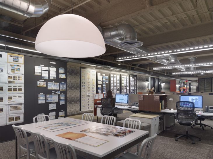 Despite Wunderman’s tight space allocation of less than 200 square feet per employee, the overall feeling is open and spacious for the 100 copywriters, art directors, graphic designers, and account executives.
