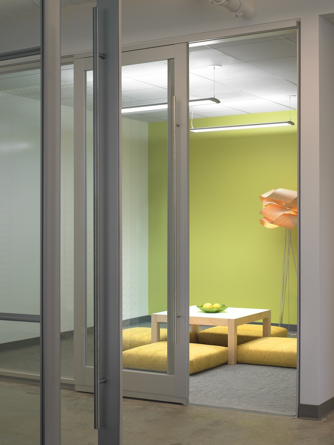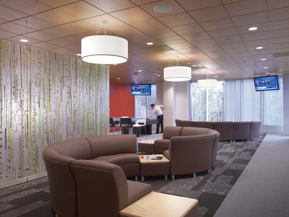 Realizing that there is also a need for down-time, SAP Labs implemented plenty of options for non-team time. Six-person study halls and acoustically sound phone rooms are located in the central areas, as well as Zen rooms that offer more casual meeting alternatives to the larger conference rooms.