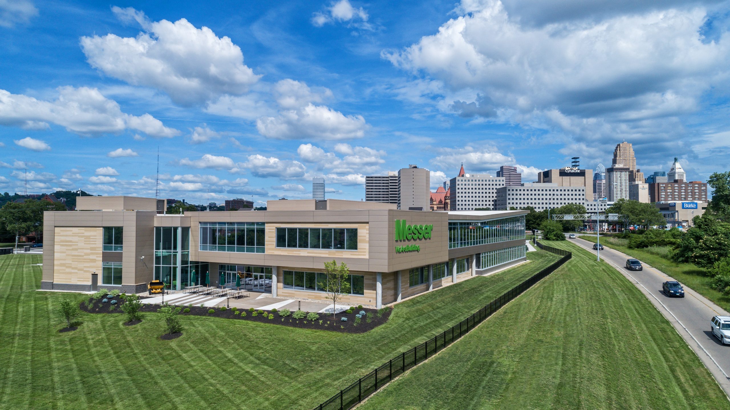 For Messer, the project begins and ends with the community. The building is prominently sited along the I-75 corridor, one of the nation’s vital north-south arteries. States Keckeis on the location of the new building, “This area is redeveloping. We want to be a part of it.” The “it” he is referring to is the rapid redevelopment of areas adjacent to the central business district in downtown Cincinnati. By placing the building in a highly visible location, on the doorstep of the city, Messer claimed a visible place alongside other leading organizations in the city. Said Bethany Smith, Vice President of Marketing and Corporate Communications, “This building– the way that it’s laid out and our 360-degree views of Cincinnati and Northern Kentucky–really connects us to the community as a whole.”