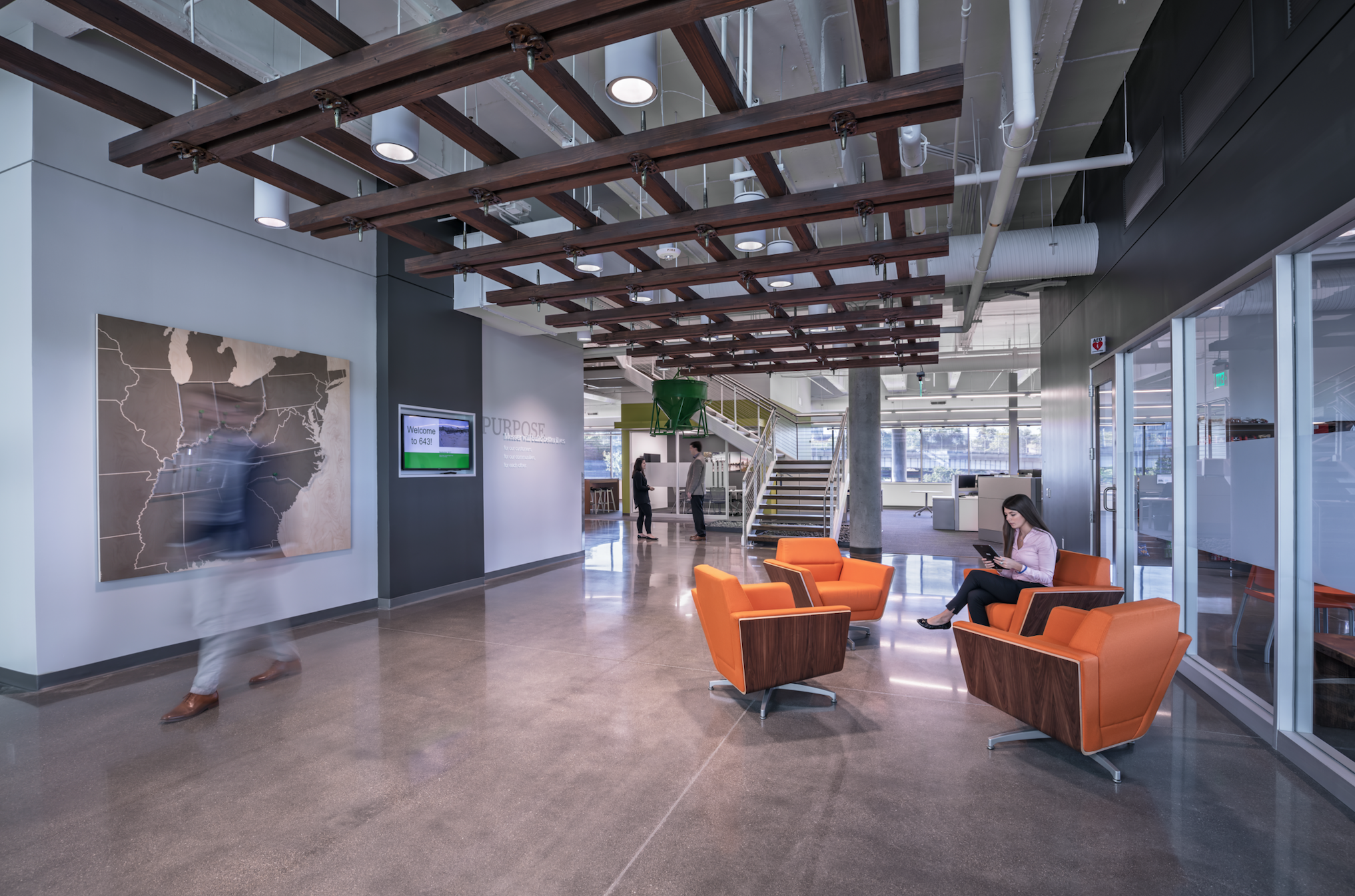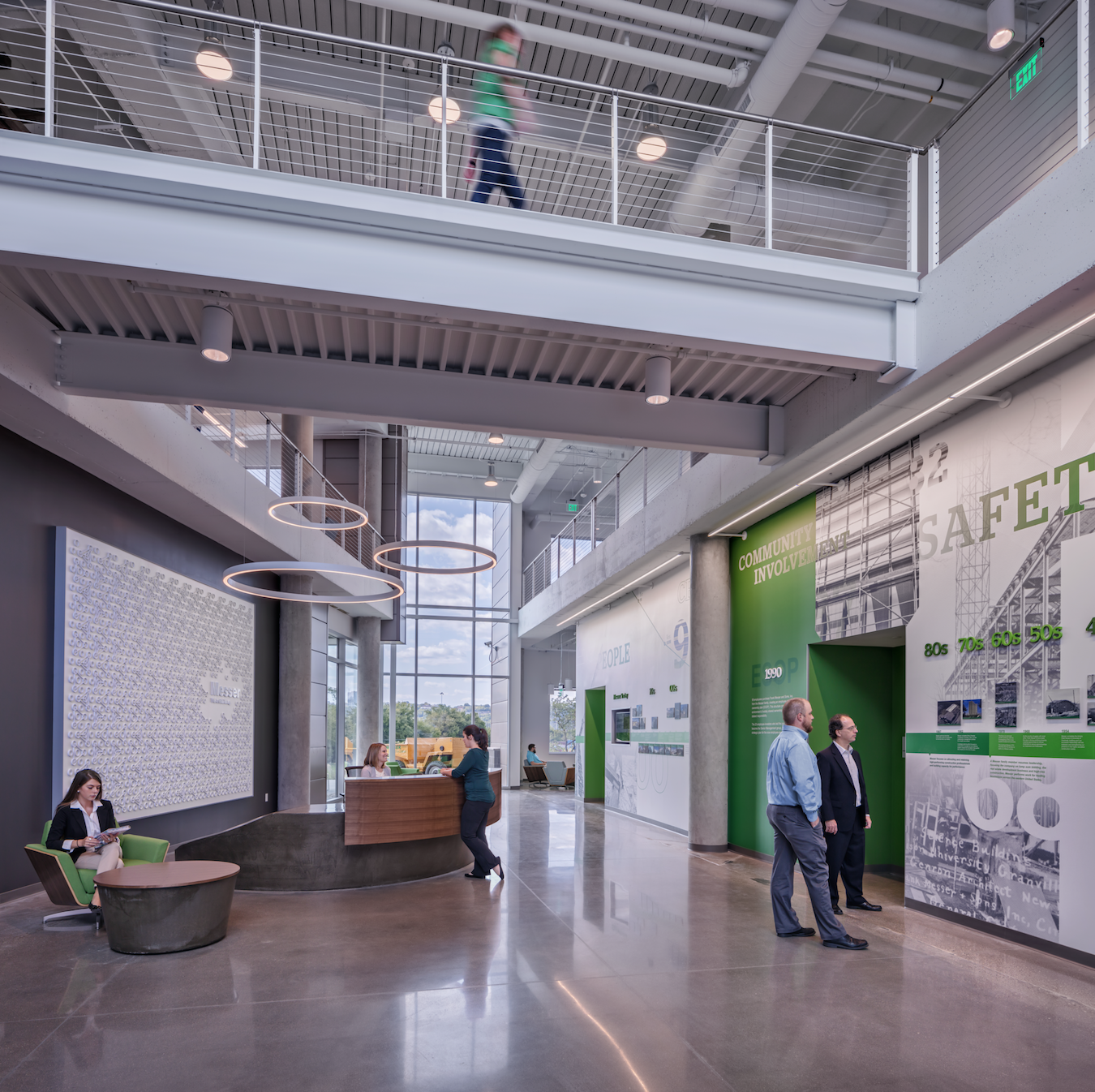 Messer’s commitment to the neighborhood is both real and substantive. Since 1990, the company has invested more than $21 million into its local communities. The company has both a thriving economic inclusion program and a dedication to workforce diversity. It hires locally, and the design features an immersive lobby that tells the Messer story, using a variety of graphic elements. Upon entering the space, a new hire has an immediate understanding of the legacy of the company, its purpose, and its long-standing values. Sonya Walton, Director of Economic Inclusion for Messer, puts it well, “I think a part of our story and our heritage is who we are within the community. We are right in the heart of the community. We are a part of it, and so I think when you come here you see instantly that our company is a community inside this building. We are learning. We are growing with each other. Messer is the fabric of this community.”