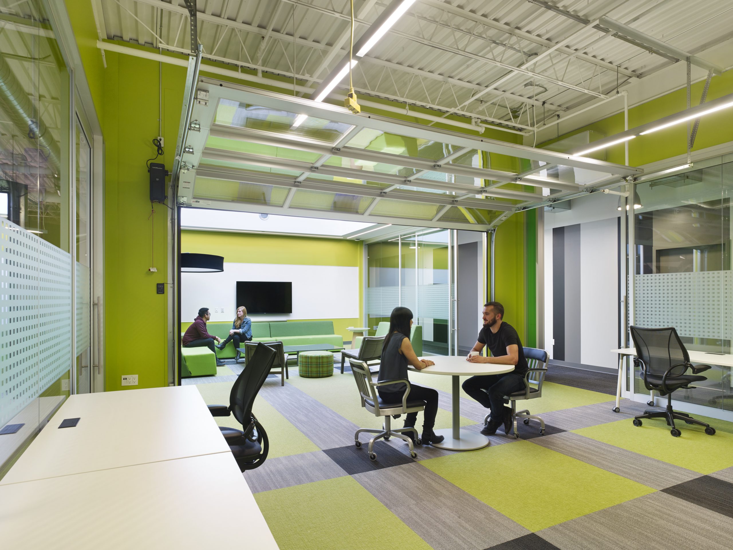 We’re designing on the premise of flexibility and leveraging demountable products to build rooms wherever we can. Then as things change, we can easily adjust the environment. Many of our open work floors are 100 percent hackable, meaning occupants are empowered to physically move desks, tables, and other furniture in order to create the best environment to do their work. If the business wants to cluster a team together, the desks are on wheels and can be moved and reformed.