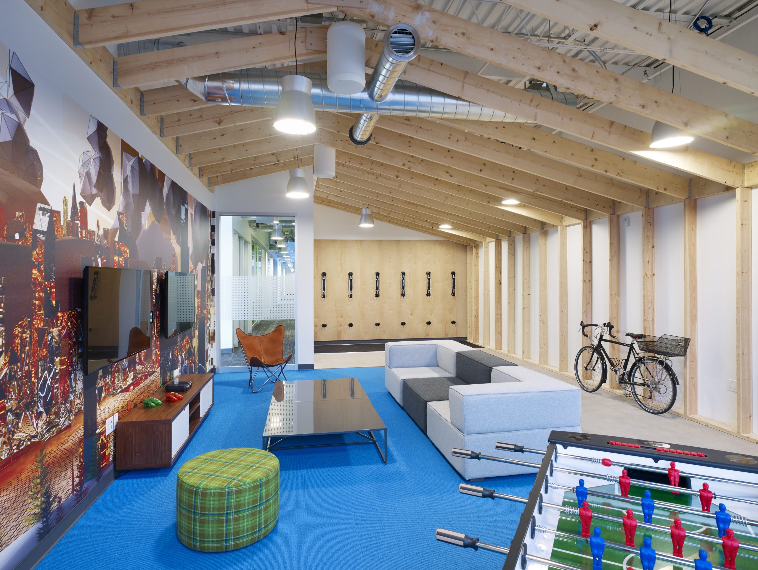 We also believe in providing different types of furniture settings within meeting rooms. For example we have casual meeting rooms with sofas and chairs, sit-to-stand meeting rooms where folks can change their posture, and scrum areas without chairs for teams to hold quick huddle sessions.