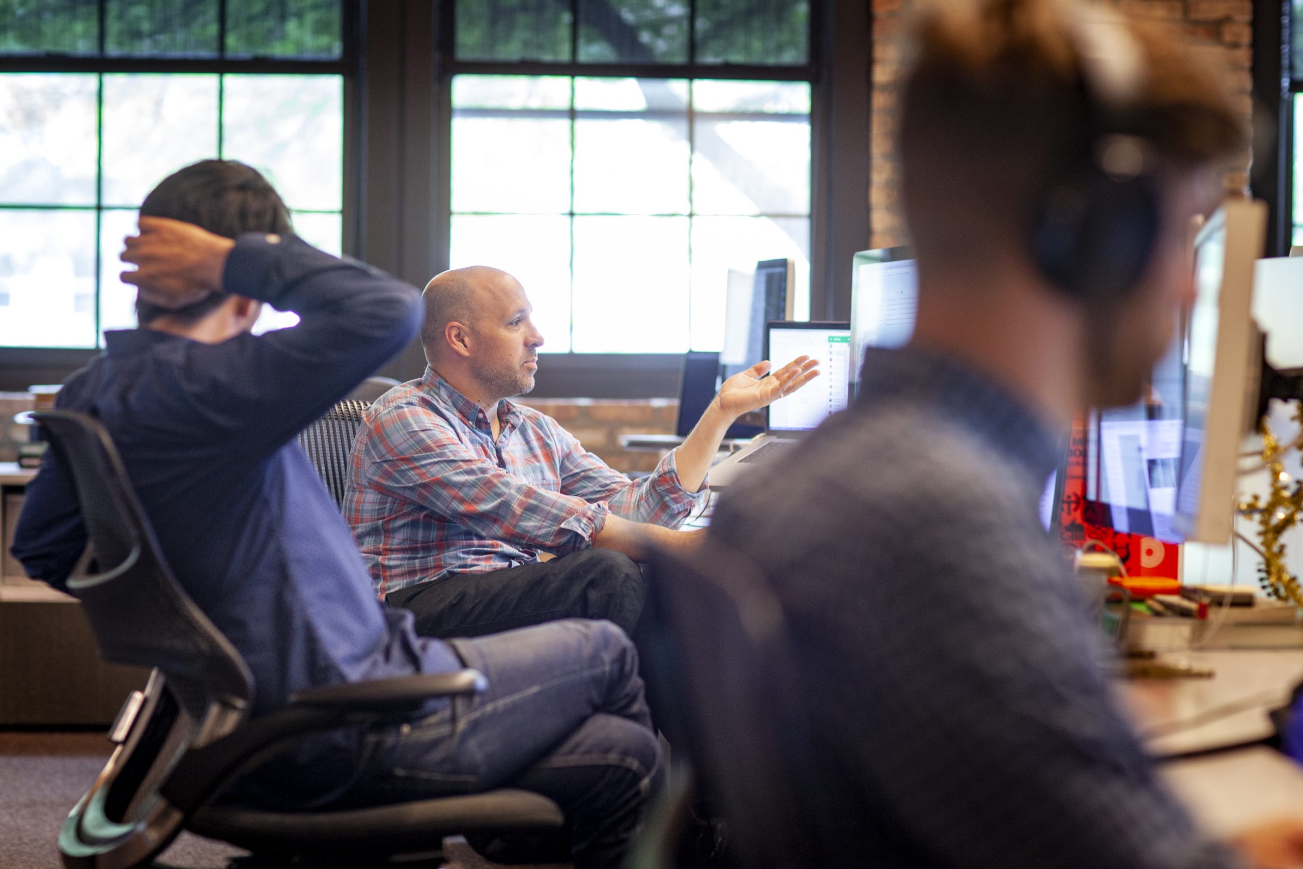 Our workspace has a physical footprint of 12,000 square feet across two floors of a commercial loft building, which is the former home of a Lava Lamp factory in a burgeoning creative corridor on Chicago’s Northside. We have an open office environment, and we sometimes use a phrase here: “No walls, no doors, no excuses.” That statement is intended to speak to the ideas of fostering collaboration and accountability no matter what role you play. We encourage listening and learning and trying your hardest, and we aim to perpetuate the great tradition of design studios in our approach to creative problem-solving.