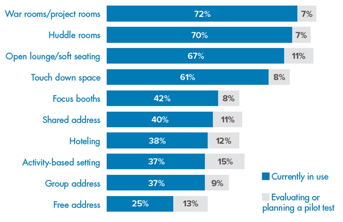 A second option I’d suggest testing out is advanced desk booking and hot desking, solutions that work wonders when a competent software platform is in place to handle reservations, requests, and assignments for everyone involved in the chain. Offering employees increased choice in where they sit may turn up space solutions you hadn’t originally considered. And hot desking can easily lead into the rising trend of remote and flexible work solutions, where tech liberates your employees to log in from almost anywhere.