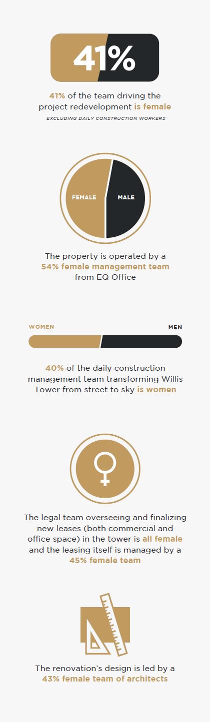 WDM likes to present the positive aspects of this issue. We wanted to know more about the team from Equity Office that is managing the repositioning of the Willis Tower in Chicago. The size of the scale of the project is large, by any standards, but what is interesting is that the team leading the effort is predominantly female. How did that happen, and how does the team view this in the context of what is happening with the position of women in the industry, in general?