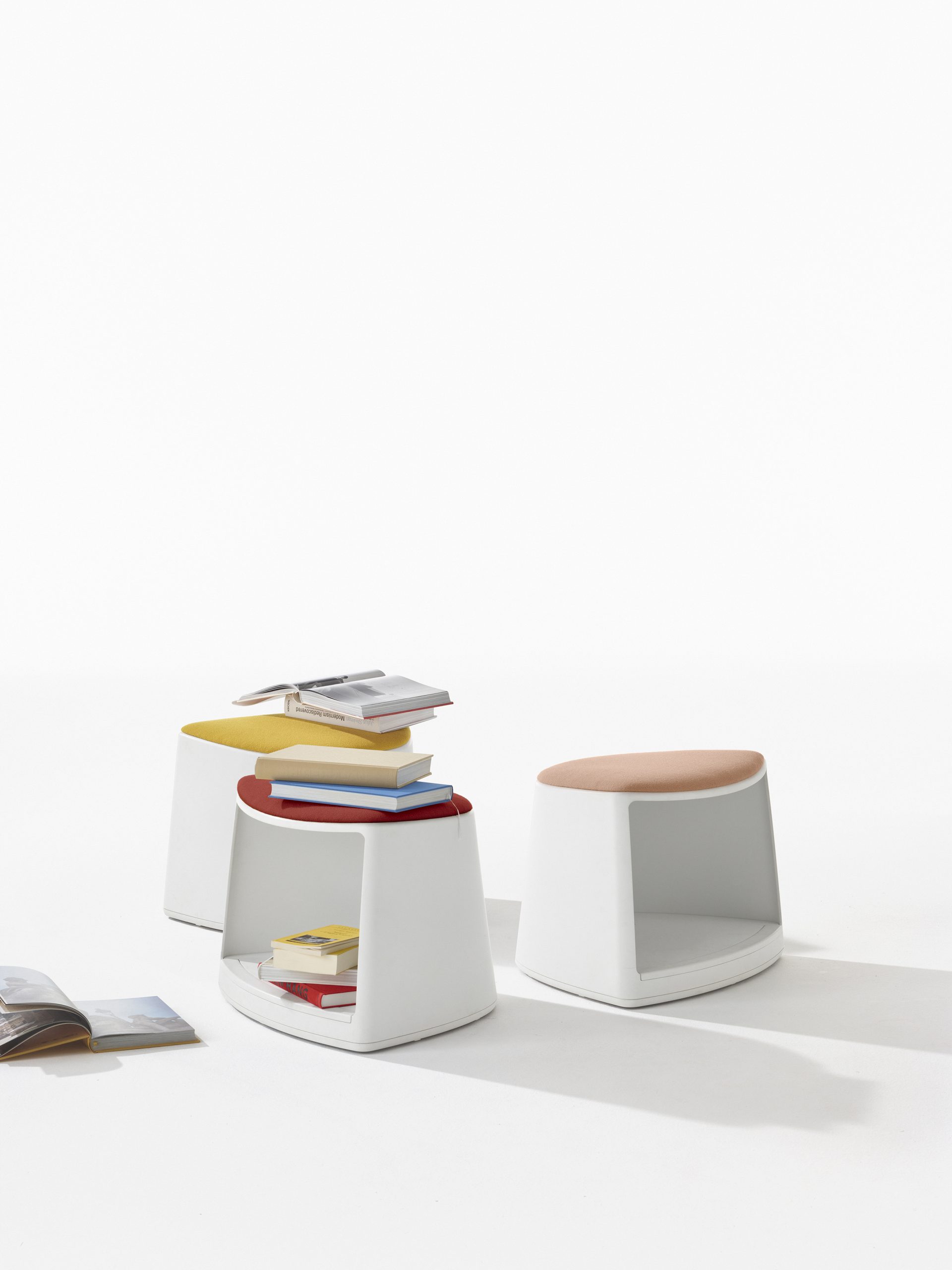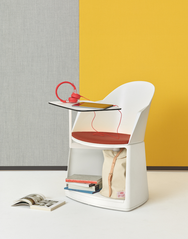 Cila Go offers expanded possibilities for seating and includes a stool, a chair and an armchair designed for learning and training contexts and contract uses. The Cila Go base with a seat pad serves as a stool with castors. Compact yet supremely functional, it offers storage options for books, briefcases or backpacks, tablets, computers, and supplies.