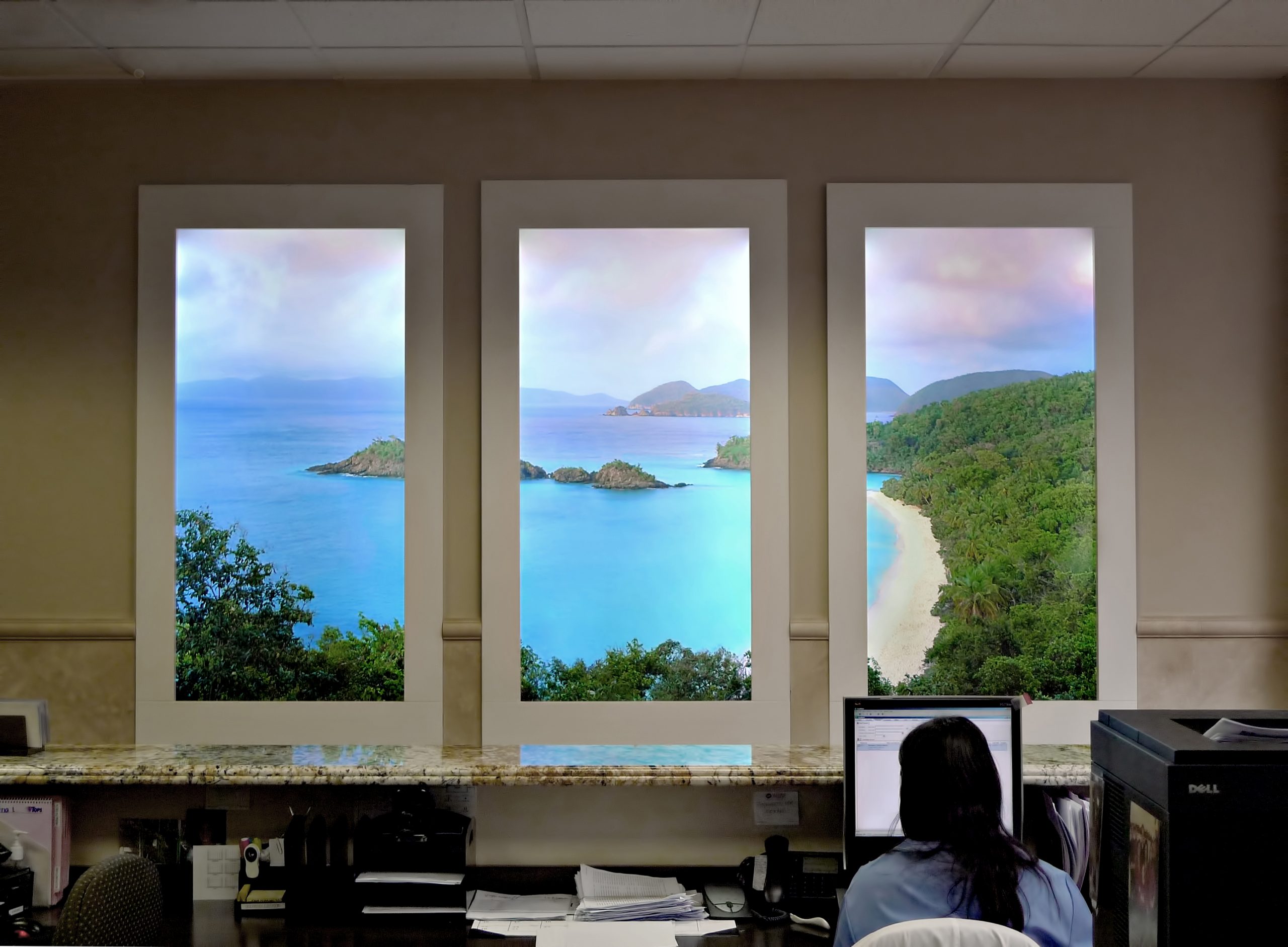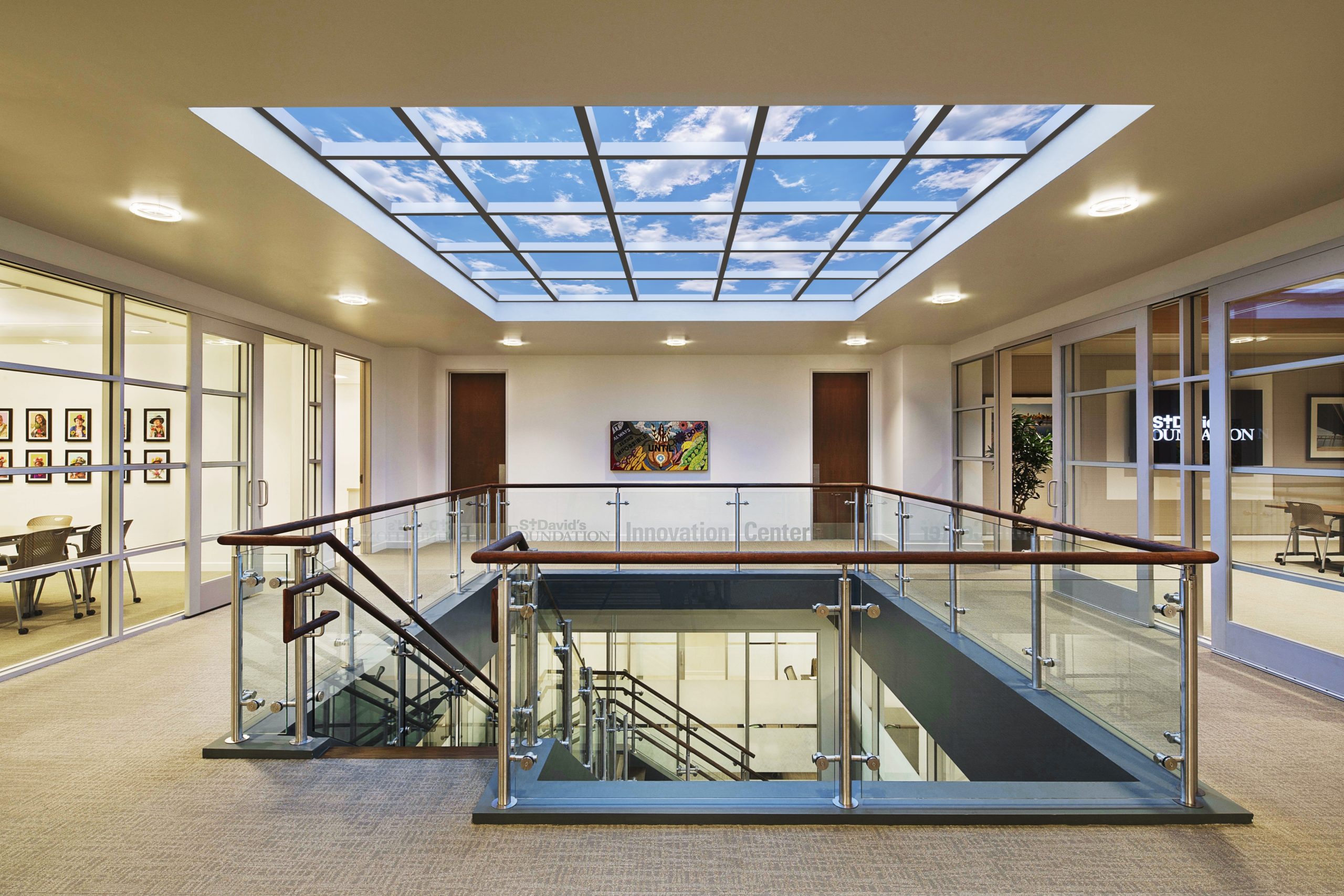 This is the healing power of well executed virtual skylights. Their application in existing environments seeking redress from spatial isolation or lack of prospect has become the business case for Cognitive Biophilia. That is, when an interior lacks the connection to a natural outdoors, it is still possible to offer occupants the restorative impact of perceived open space.