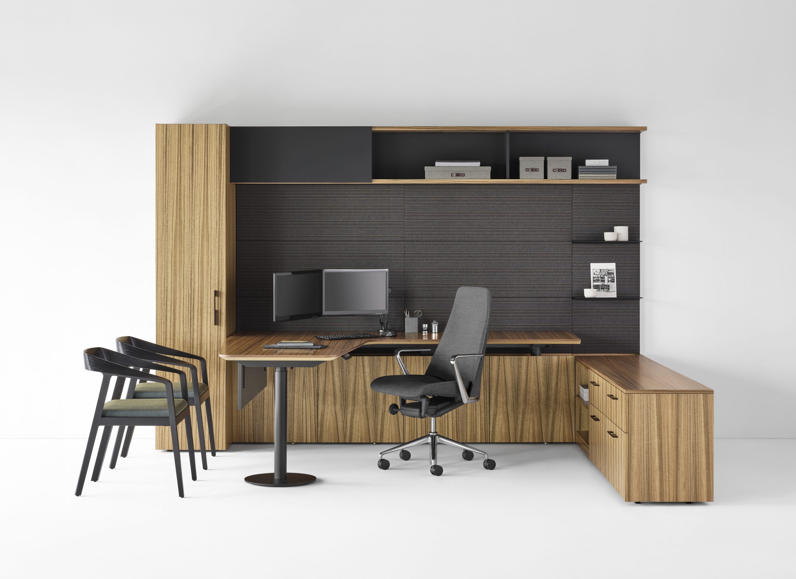 Geiger One is a new concept in casegoods design. We envision it as a blank slate for designers to use with their clients to create their own customized solutions for a variety of spaces—private offices, open plan, even collaborative areas. The starting point wasn’t an aesthetic or application, but rather a versatile infrastructure that can be built upon using a standard kit of parts to create spaces that feel custom. With height-adjustable work surfaces as the standard and a broad range of materials, finishes, and price points available, Geiger One can be the first step in creating high performing workplaces for a range of organizations.