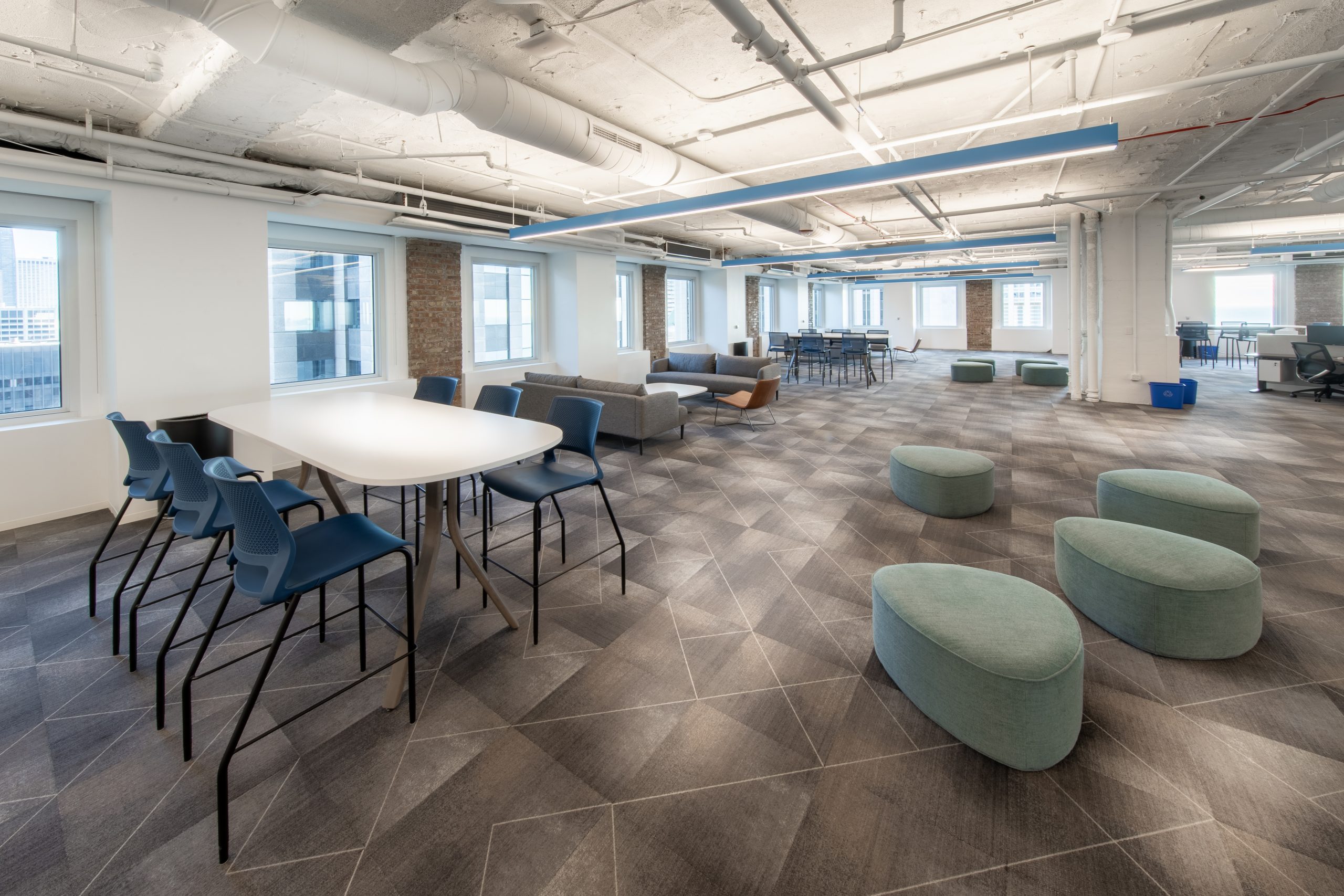 Jared: I played sports growing up and always believed if your uniform and equipment looked good, that it showed on the field. We want people to love the space they work in and the equipment they have. Before we built out this space, we did a tour in Silicon Valley of the great firms including Facebook, Google, LinkedIn, Lyft, Square, and Twitter. When you walk into those offices, you can feel the energy. There was also this terrific dichotomy between quiet space and collaborative space. It felt incredibly high-tech. When people walk into our space now, the first word we typically hear is “Wow”. That’s exactly what we tried to create with some of the sight-lines and the TV screens, and the high-tech look and feel of the space. We also have plenty of quiet and collaborative opportunities with a good mix of wide-open space for people to pick a spot to work for the day and some individual private spaces for heads-down work. We have very few offices and a terrific view that overlooks Lake Michigan.