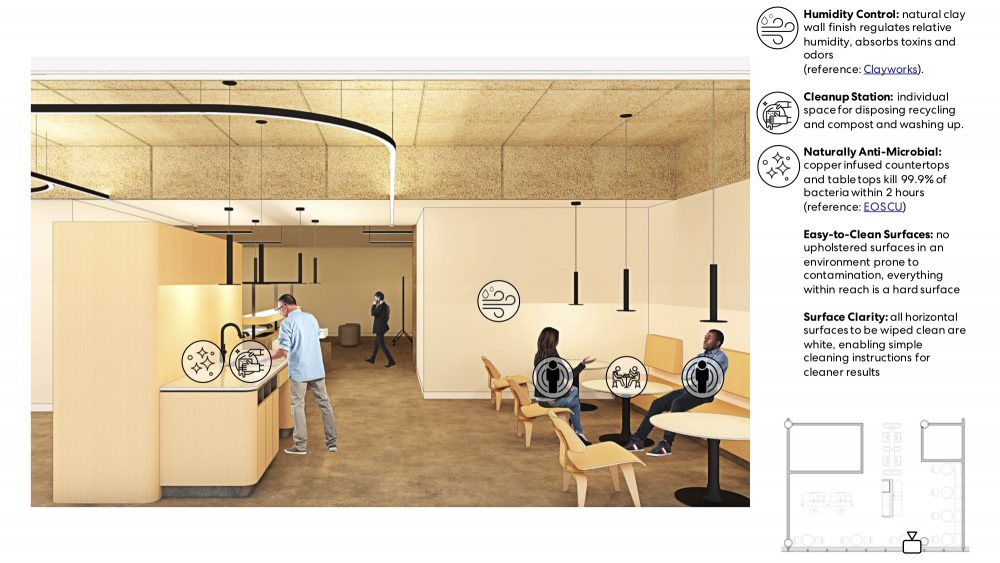 Markus: I think my approach focused on how a space would operate in a pandemic. The next iteration would include how it operates in a non-pandemic scenario and how it is incorporated into the entire workplace environment. The final result would be something that easily flexes between those two scenarios and potentially provides functionality beyond a break area. For example, could ideas around an anteroom or mudroom overlap with the break area? Most importantly though, we need to start implementing these strategies with clients, otherwise it’s all for nothing.