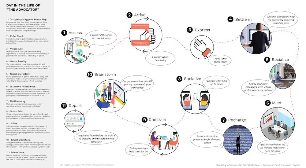As HOK explores the future of the workplace through discussions with colleagues, trade partners, and clients, we develop a clearer vision for the future. We are expanding our team to include a wider range of subject matter experts to align the concepts with the future workplace, continue our research, and further develop the individual personas.