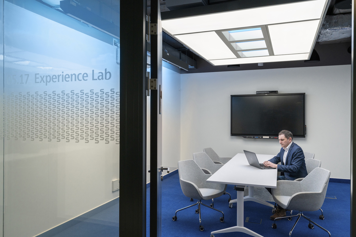 Following nature’s example, the light color and illuminance change over the course of the day from cool light colors that activate to warm light colors that relax. Such concepts of biodynamic lighting did already exist, but NatureConnect adds crucial elements – such as a view to the sky and natural dynamics on the wall – for a more immersive, pleasant and natural experience.