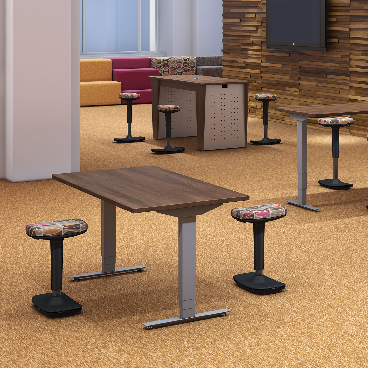- Adjustable Options: Can move up and down via dual controls under seat to accommodate a sit-to-stand desk.