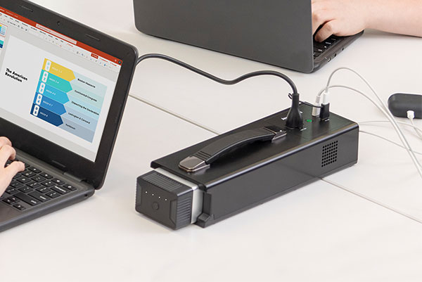 Whether you’re a teacher, librarian, corporate events manager, or business professional, you face the problem of too many power-hungry devices and not enough available outlets. Up until now, you were forced to either create a trip hazard by running unsightly extension cords and power strips, or invest in costly infrastructure, floor cores, and electrical supplies. While electronic devices have evolved dramatically, the way we power them has been stuck squarely in the past…until now. EdgePower® rids your room of extension cords and power strips, delivering convenient, long-lasting battery power wherever you need it.