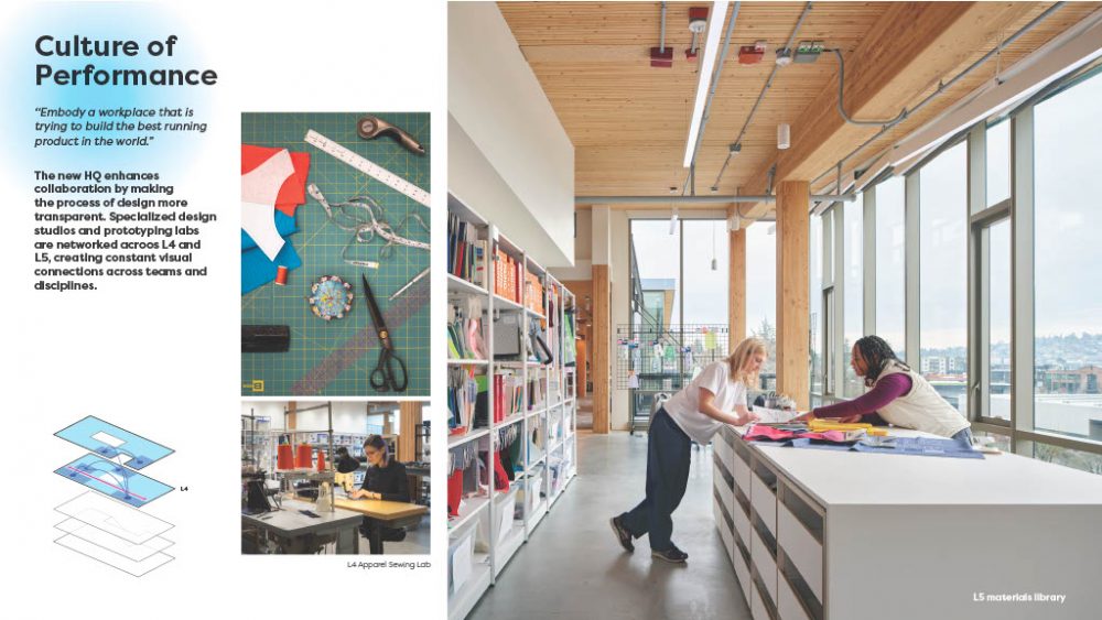 Second, Culture of Performance celebrates Brooks’ commitment to craft, experimentation, and innovation. From fabric testing and prototyping to real-world running trials, the headquarters makes the design process visible, showcasing the brand’s relentless pursuit of excellence and collaboration at every step.