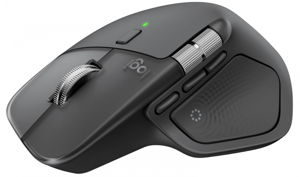 The Logitech MX Master 4 is an ergonomic, high-performance wireless mouse built for comfort and productivity. Its sculpted shape supports your hand during long work sessions, while the MagSpeed wheel delivers ultra-fast, precise scrolling. The mouse features customizable haptic feedback, quiet clicks for a more focused workspace, and seamless connectivity through Bluetooth or a USB-C receiver.