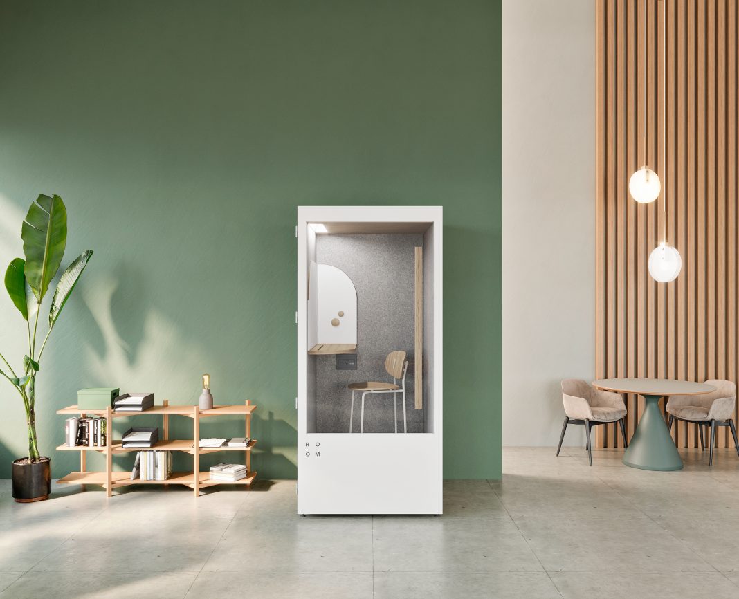 The ROOM Phone Booth, along with the full suite of ROOM’s modular office products, has received a certified autism resource badge from the International Board of Credentialing and Continuing Education Standards (IBCCES) supporting neurodiversity in the workspace. The Phone Booth is designed to reduce sensory overload, providing a calm, controlled environment perfect for neurodiverse individuals, facilitating concentration and reducing stress in dynamic workplace settings.