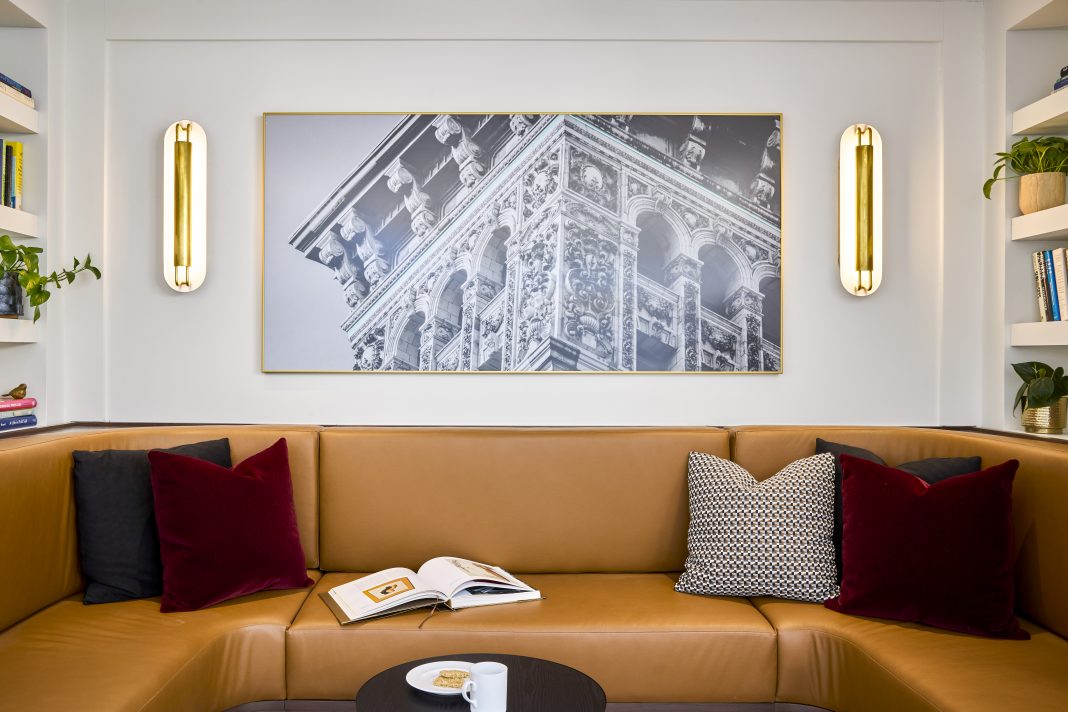At Alvarium Tiedemann Global’s office relocation in New York City, the design detailed wood paneling, subtle curves and layered lighting over a base that was already warm and inviting. These details work double-time, as they reflect both the rich historical architecture of the surroundings and the heritage of the company, adding emphasis to a gallery of artwork that was moved from the company’s old office into its new space.