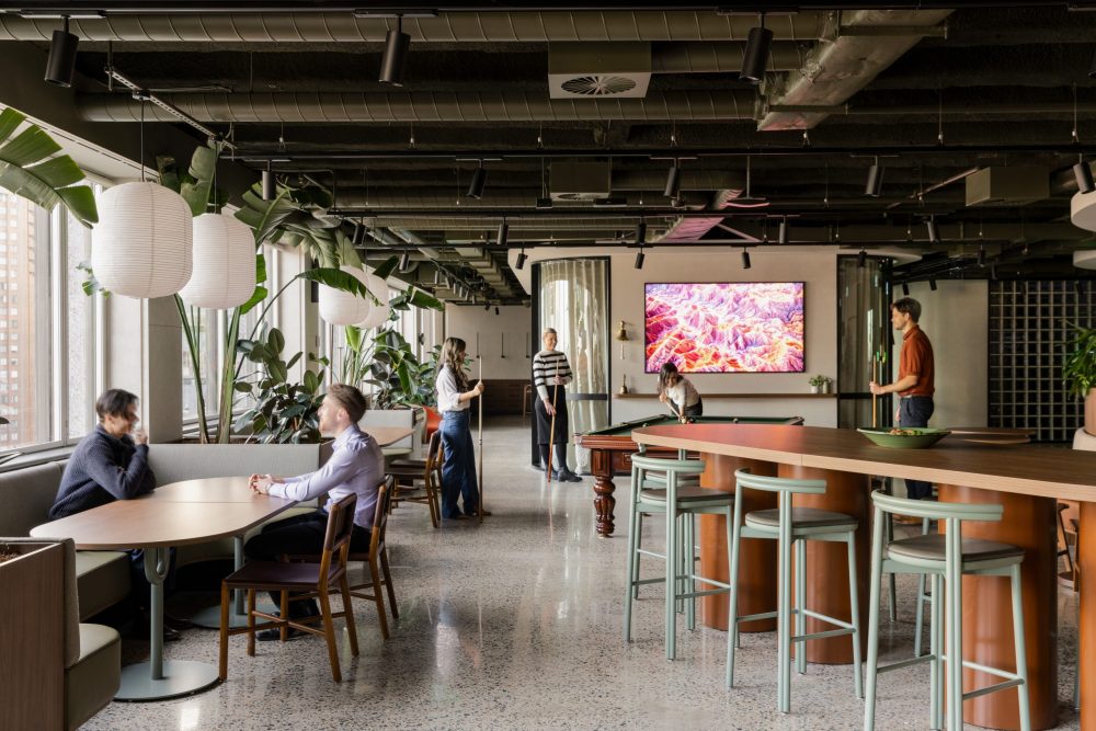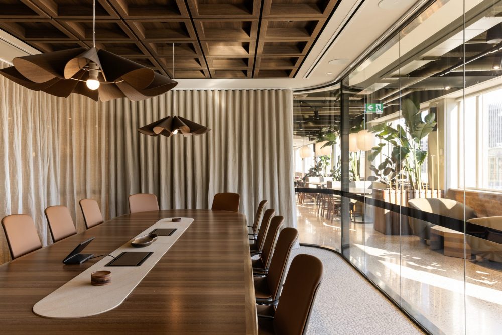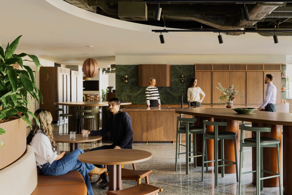 Six months post-occupancy, Sheldon has received a wealth of feedback from both staff and clients who have toured the new office. The most celebrated feature across both groups is the central breakout and kitchen area, which greets visitors immediately after exiting the lifts. This hospitality-inspired hub has become the heart of the workplace — a vibrant, social environment that encourages connection and community. With its sweeping skyline views, modular banquette seating, natural stone kitchen island, and a pool table beneath a mounted screen, it sets a welcoming tone and leaves a strong first impression. Over time, staff have embraced this area for daily catchups, celebrations, and even after-hours gatherings, reinforcing its role as a unifying element within the office.