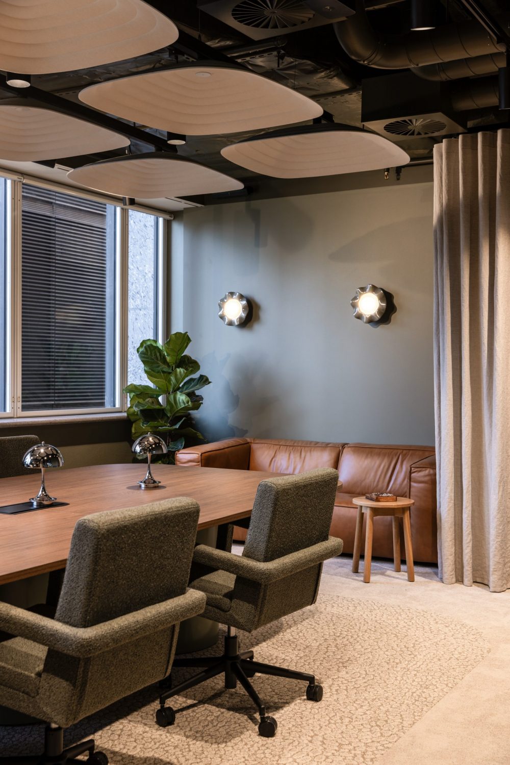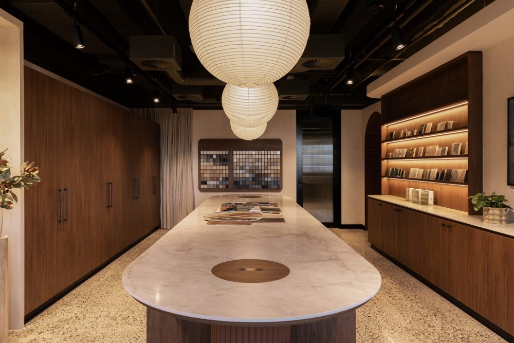 Lighting throughout the office is carefully layered and technology-enabled, incorporating circadian rhythm systems that enhance occupant wellbeing and visual comfort. Building services and integrated audiovisual infrastructure operate smoothly to support daily activities without disrupting the aesthetic harmony.