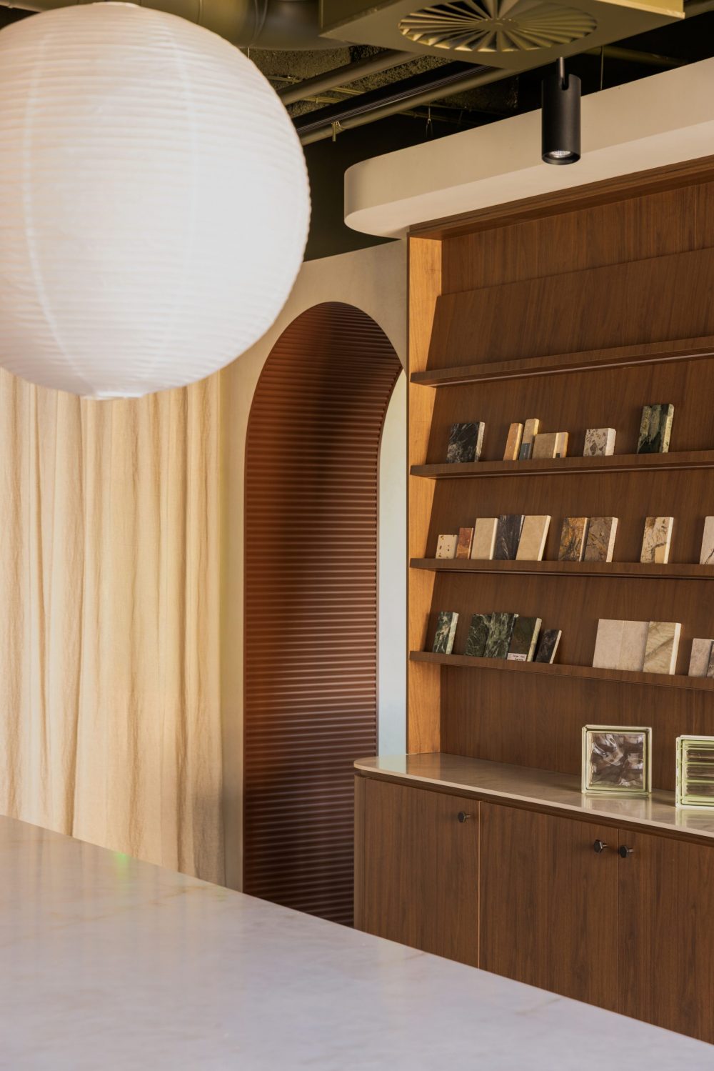 Another standout space frequently mentioned in feedback is the Internal Divisions Library. Designed as an interactive zone showcasing Sheldon’s design and manufacturing capabilities, it features curated materials, project boards, and trade samples — offering an immersive environment where designers and clients can collaborate. This area has become one of the most unique and distinctly “Sheldon” spaces in the layout, embodying the company’s multidisciplinary expertise.