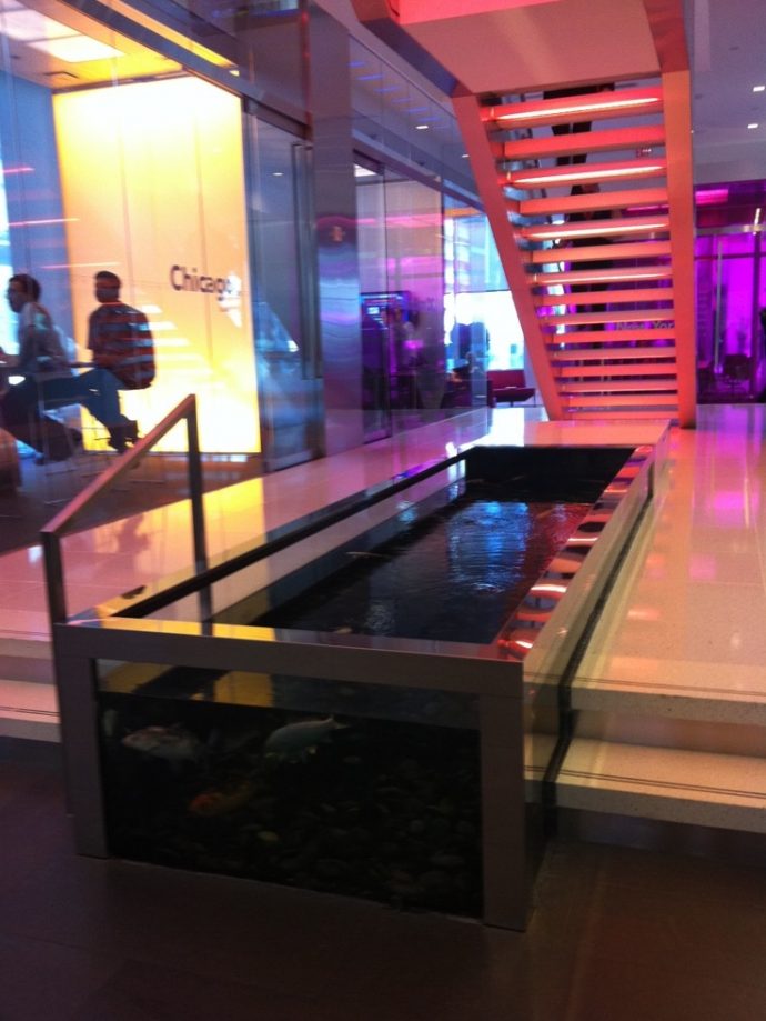 On single height floors and places, where atriums are not possible, we see living walls, aquariums, and fish ponds being used. The lobby of the meeting facilities of Bloomberg Financial features a glass koi pond. Upon first moving into the New York Terrapin office, we had a view of 4,000 square feet of black asphalt roof, on which we installed a green roof system. While there are storm water and some energy benefits of this green roof, the more biophilic outcome is that we are able to see plants, bees, butterflies and birds from our desks, which creates a pleasant work atmosphere.