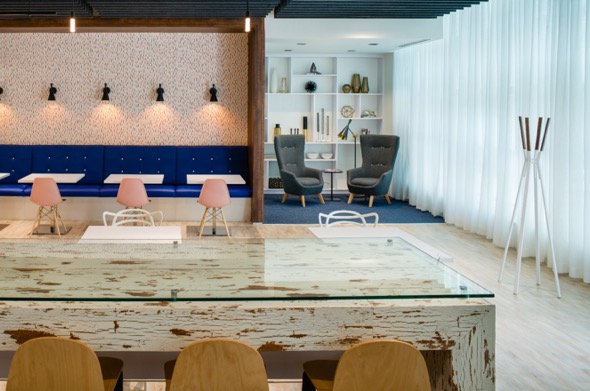 At Work Design Magazine we are always up for finding out new ways to approach workplace design. At a brief meet up after this year’s NeoCon with Dr. Sally Augustin, we talked about working up a story that was a bit different and that posed alternate ways of evaluating the efficacy of design solutions for today’s offices. One of the things we asked Sally was how scientific applications could also be applied to perhaps analyze the softer side of the effect environment has on people – how space makes us feel in addition to the measurable physiological effects that can be documented in more scientific studies. She wrote an article for us about this topic back in September. Sally also proposed a joint analysis of some workplace designs with her friend and, a colleague who is a feng shui master, Maureen Calamia. Sally mentioned that she and Maureen regularly value the same attributes in designed spaces. We were intrigued by the prospect, and after soliciting some images to use as examples from some of our favorite design firms, we are happy to present the findings.