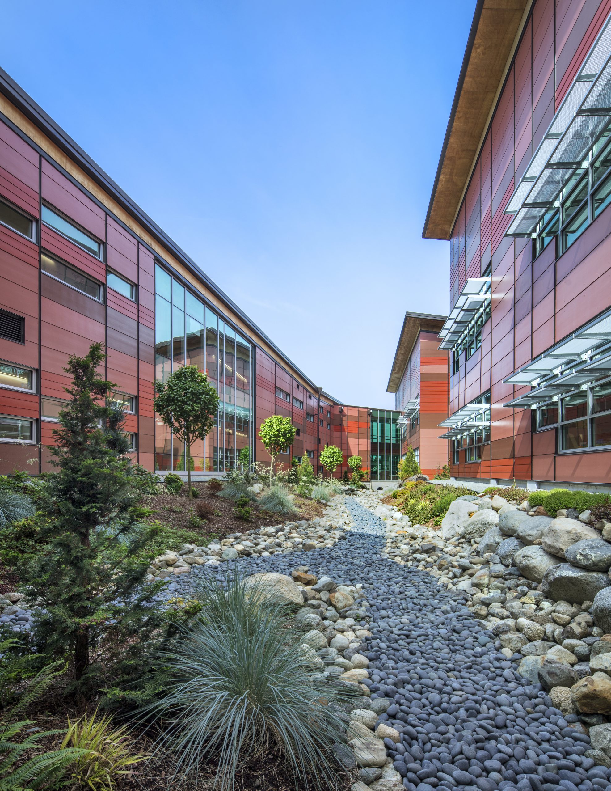 Landscape or nature views are key to a quality that impacts productivity and behavior. Natural views tie into human kind’s innate need for a connection to nature, natural forms, or patterns, a concept known as biophilia. Site design and building form provide opportunities to create such views when they are not part of the natural landscape.
