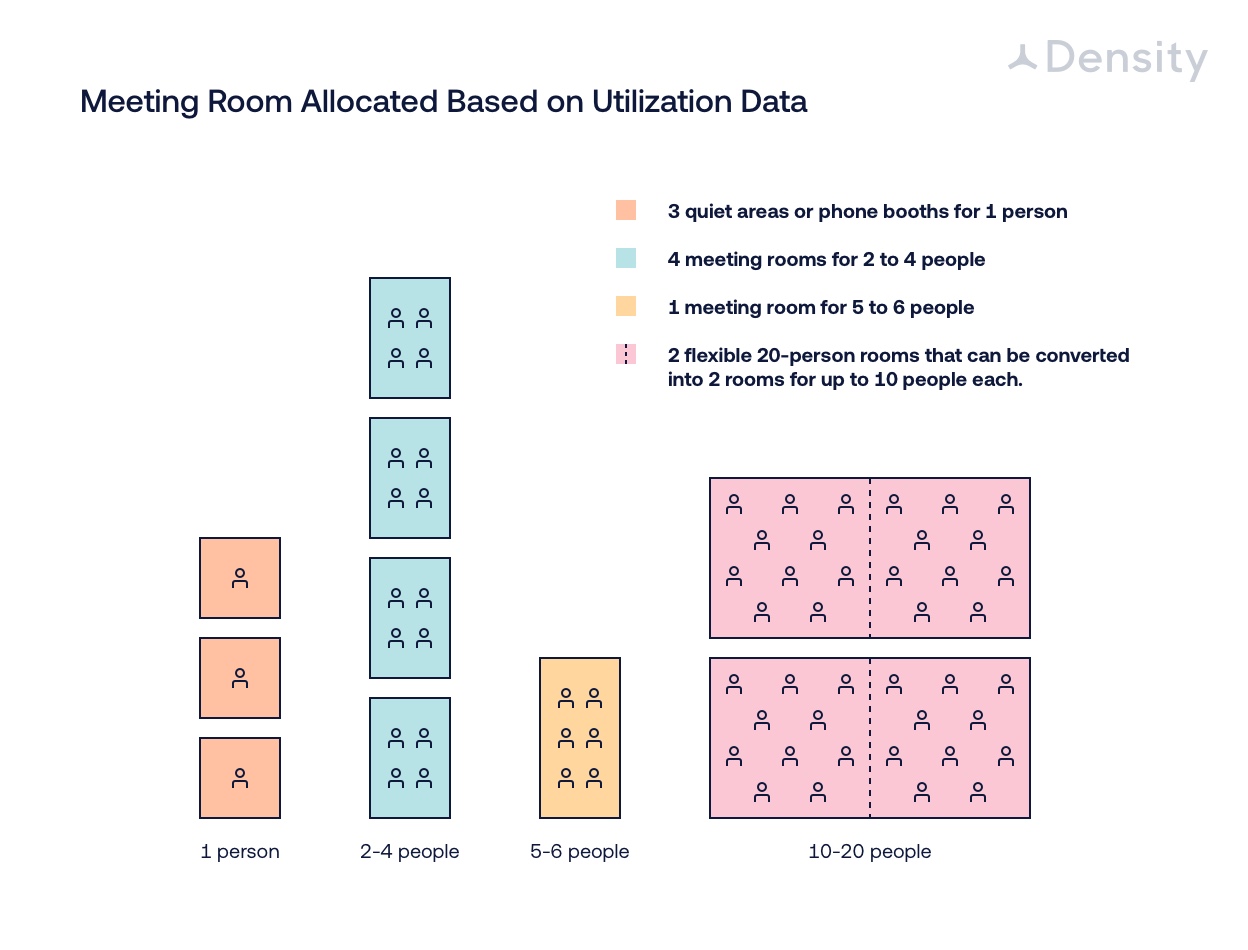 Determining the right size and types of meeting rooms requires ongoing measurement of how people in your own organization use space. Until recently, it’s never been possible to measure exactly how every room in a building is used. But new advances in sensor technology now enable us to understand how every room in a building is used without collecting any personally identifiable information or otherwise raising privacy concerns.