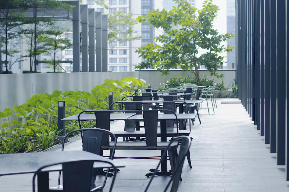 On the 8F of the building is a community space called The Yard where healthy food options are served and adjacent to it is an edible garden called The Pandan Terrace where guests can relax and breathe fresh air. The outdoor space allows them to experience greenery in the middle of the city while taking in the view of the surrounding area.