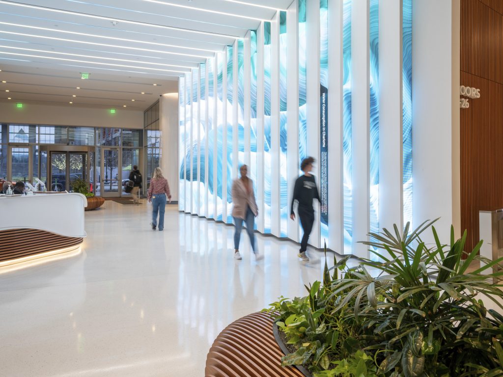 Immersive experiences are also known to spark creativity by encouraging play, engaging imagination, disrupting daily patterns that stagnate innovation, and transforming our brains and behaviors. Regardless of which type of immersive display is best suited for a company, the end goal is the same: to bring people together to create community and establish social bonds through active engagement and shared experiences — all of which are beneficial to employee engagement, wellbeing and productivity.