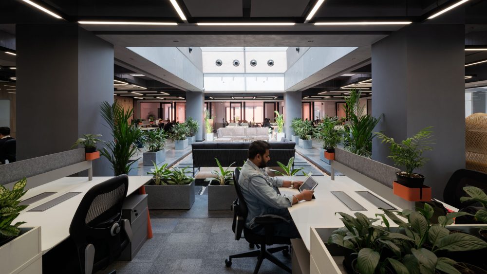 Air: Fresh air systems with advanced filtration ensure healthy indoor environments. Indoor plants further improve air quality and optimise humidity. Low-VOC finishes throughout the building, along with natural ventilation in the warehouses, keep the indoor air quality within healthy limits, even during city-wide pollution spikes.