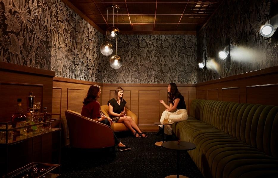 - Custom wallcoverings with corporate or regional motifs turn a blank wall into an opportunity for discovery.