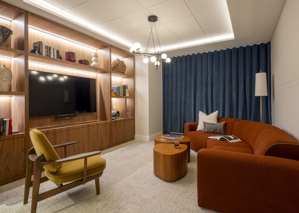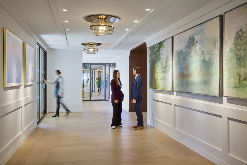 At Alvarium Tiedemann Global’s office relocation in New York City, the design detailed wood paneling, subtle curves and layered lighting over a base that was already warm and inviting. These details work double-time, as they reflect both the rich historical architecture of the surroundings and the heritage of the company, adding emphasis to a gallery of artwork that was moved from the company’s old office into its new space.