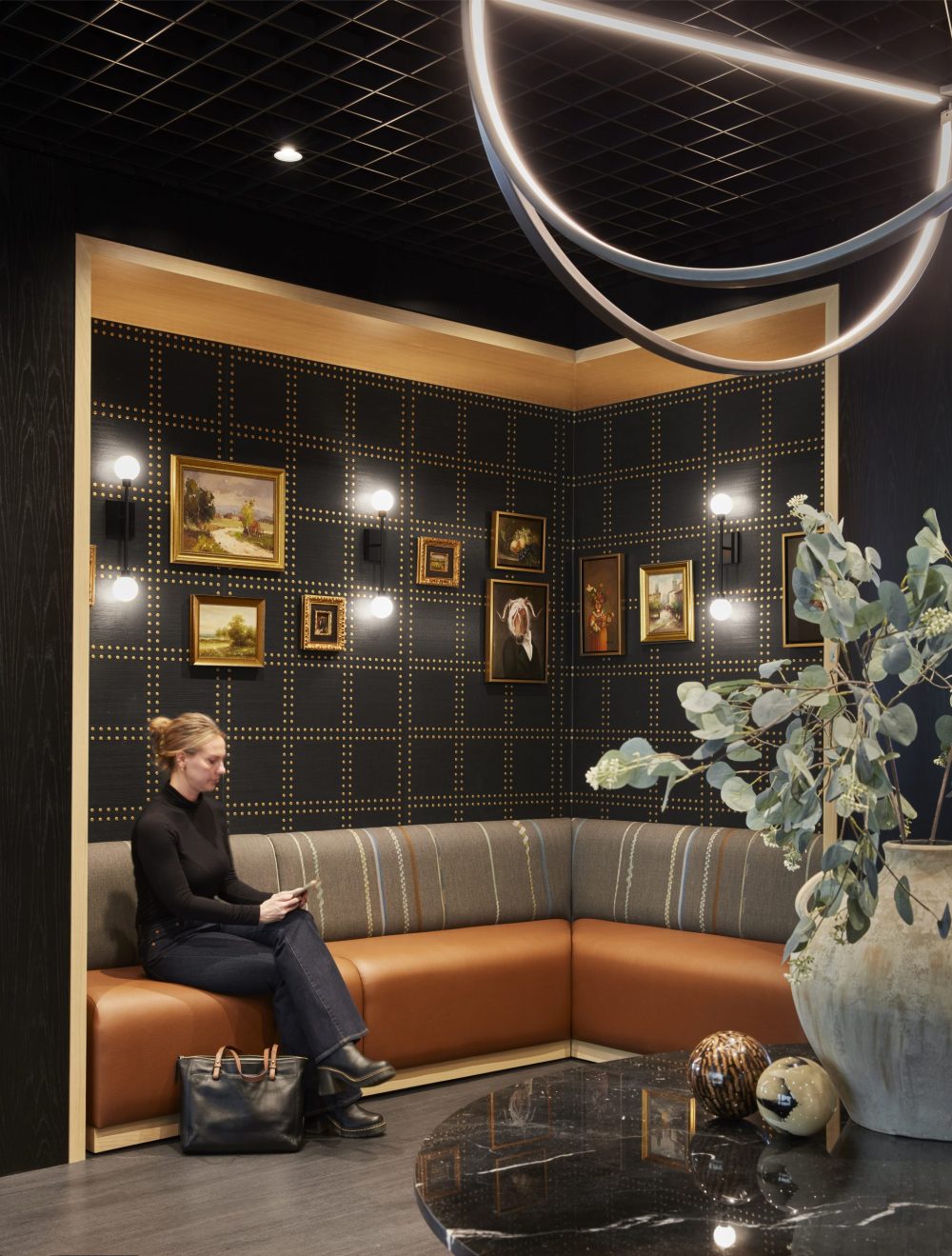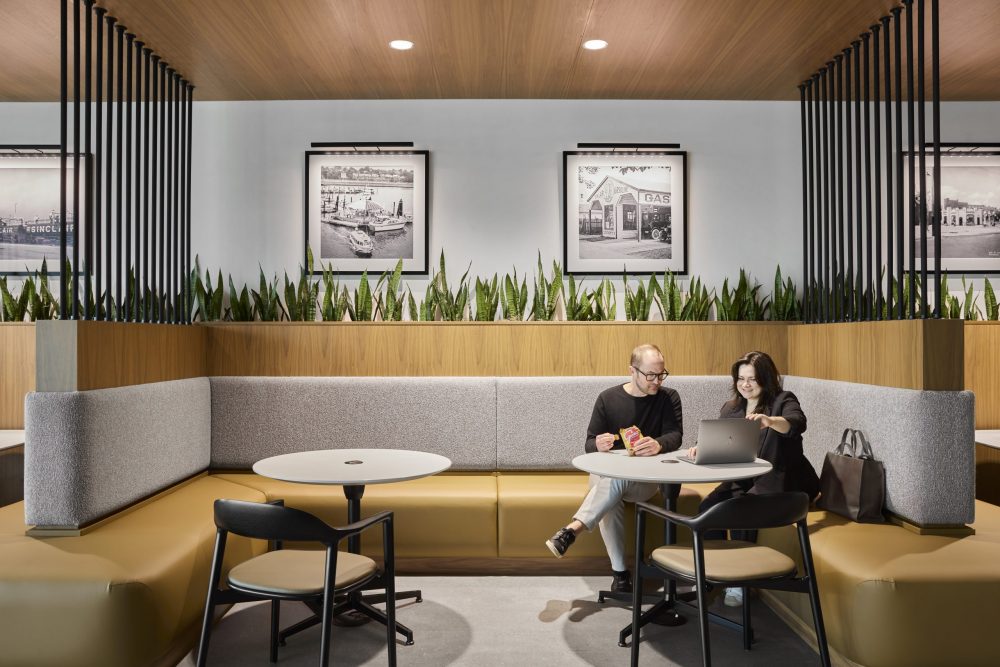 Architectural details, art and accessories play a key role in purpose-led designs in which corporate identity and values will be expressed more subtly, fostering a more authentic connection to the space. Think of it as the anti-Severance movement: employees aren’t trapped in nameless buildings with sterile lights and endless, featureless hallways here. Instead, layered designs, thoughtful accessories, and story-driven spaces invite employees to linger, discover and connect — and even bring their own individuality to a space.