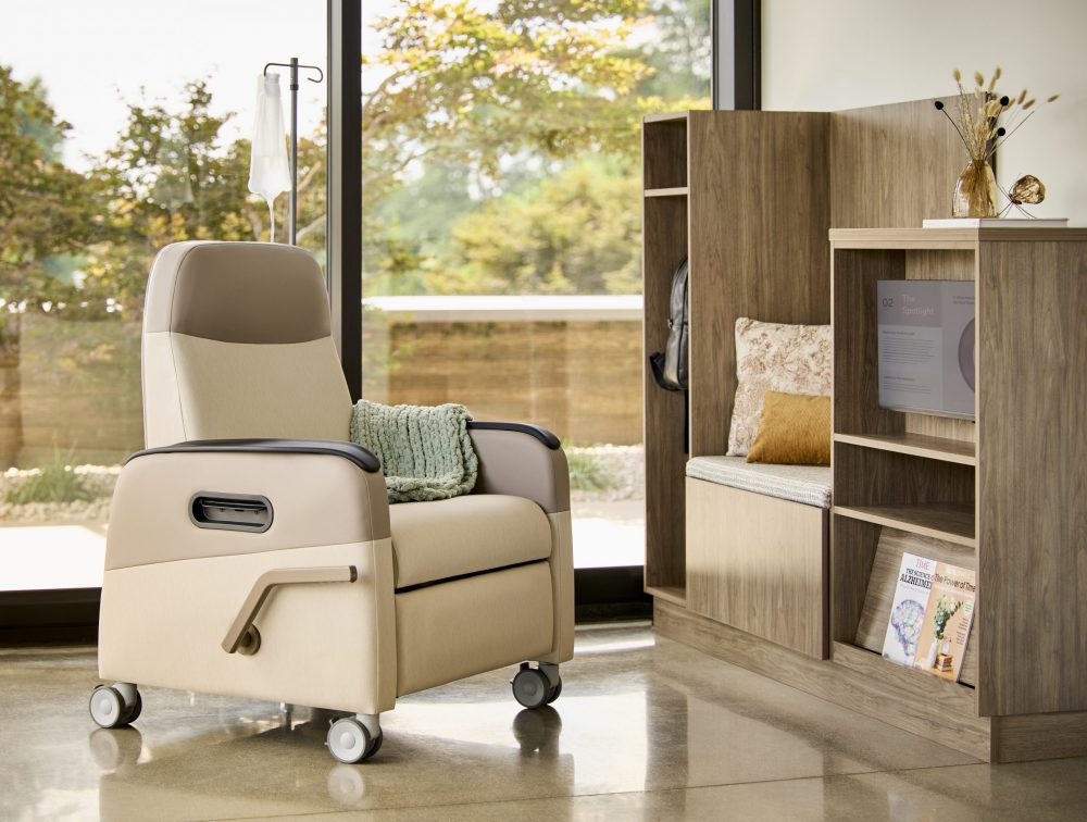 Featuring clean, modern lines and a home-like aesthetic, Embra provides a sense of warmth and comfort. This collection of freestanding lounge, sleep sofas, and modular community seating easily creates spaces for respite, relaxation, and quiet reflection. Embra was created with person-centered design at its core. It is intuitively designed with integrated features including accessible power, storage for personal items, tables, and lighting. These design elements naturally bring humanity into wellness spaces.